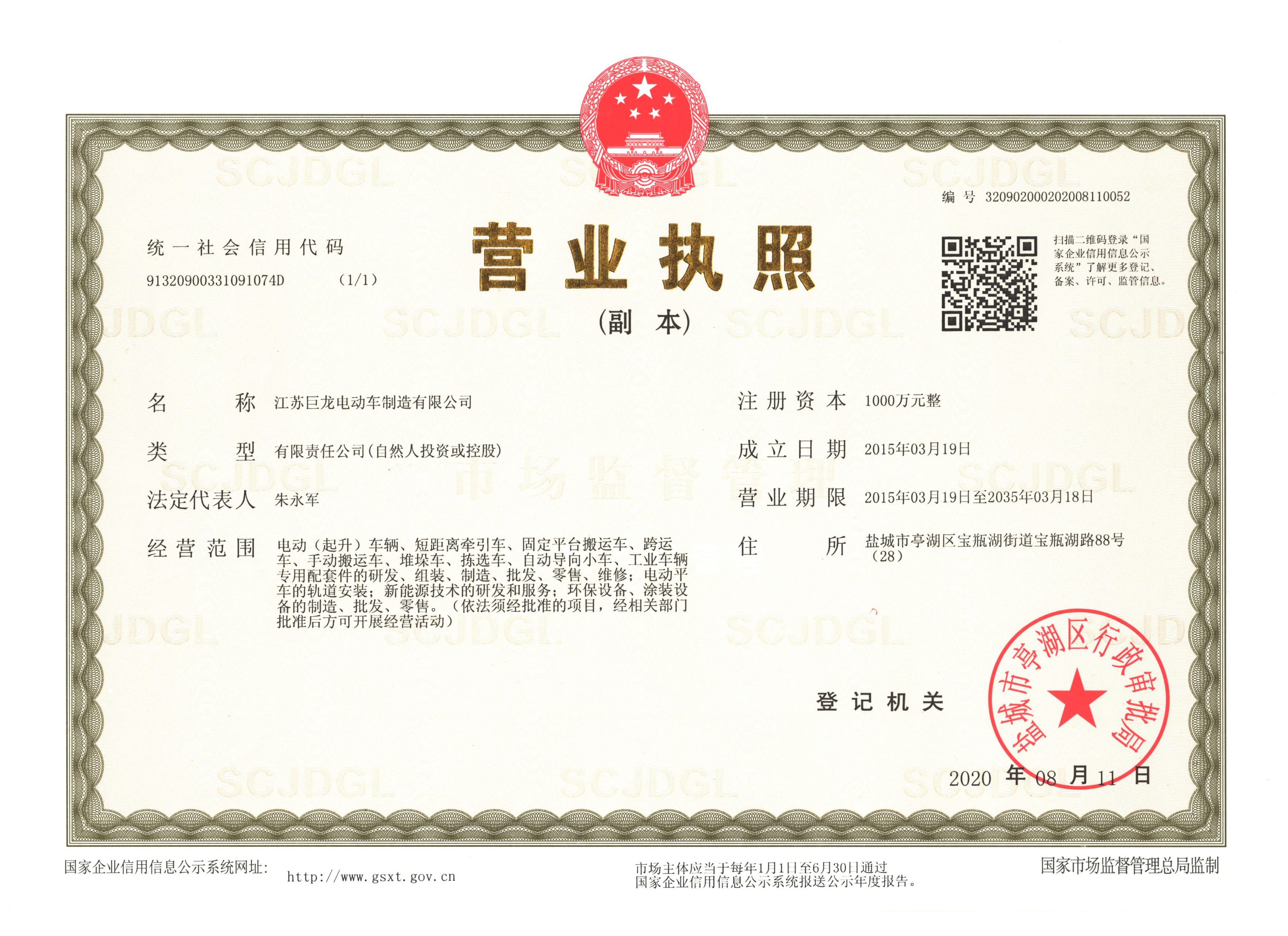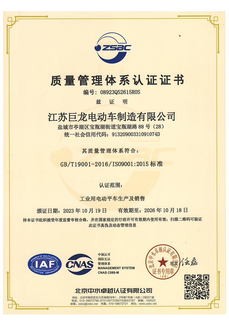 江蘇巨龍電動車制造有限公司是國內具有20年集研發、生產、銷售、售后于一體的專業電動車輛設備公司。位于江蘇省鹽城市高新區(原市開發區),占地20000平方米,建筑面積約1 2000平方米,緊鄰寧靖鹽高速、204國道、南洋飛機場,交通便捷。公司現有員工95余人,專業技術人員35余人,工程技術人員10人。擁有良好的制造、檢測、實驗設備和完善的技術服務體系,為全國大、中型工礦企業、鋼廠、機械冶金、電廠、車站、港口、機場、市政環保部門、城管、公安、旅游景點、小區物業等行業提供雄厚的技術力量,是國內生產電動搬運車的專業生產廠家。標志著江蘇巨龍邁向發展的新臺階,必將促進巨龍公司更加快速、長足的發展。